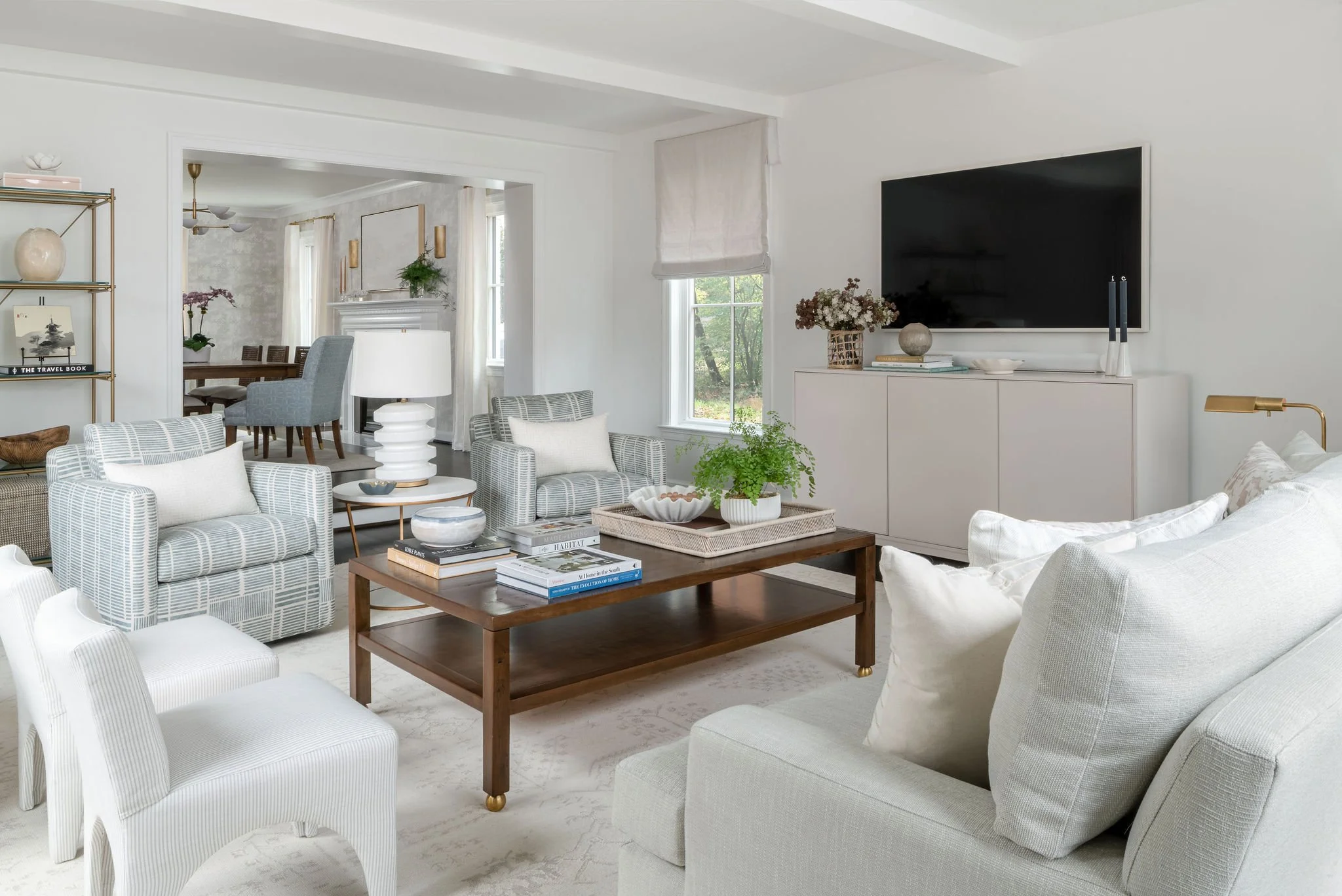 A few years after our original installation, we had the honor of returning for a new and incredibly special project: a nursery for her baby girl. Staying true to her timeless aesthetic, we layered in soft tones and the loveliest shade of pink to create a serene, love-filled space for a little one already so adored.